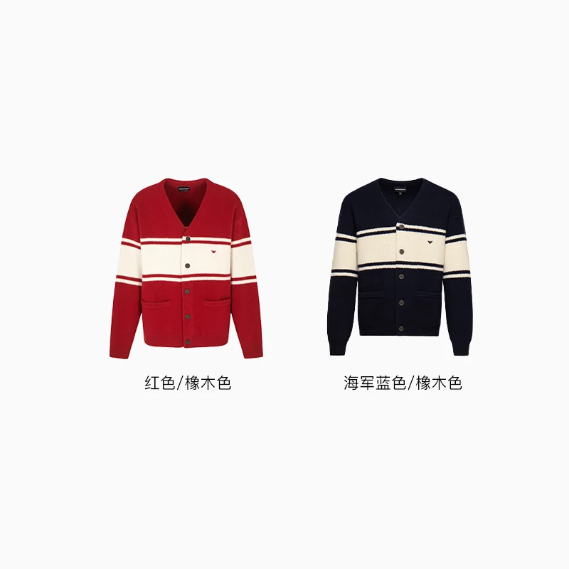 男女情侣新年绵羊毛条纹针织开衫 阿玛尼秋冬新款 ARMANI EMPORIO