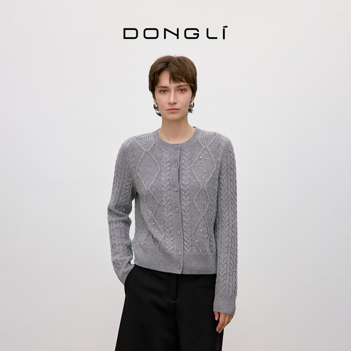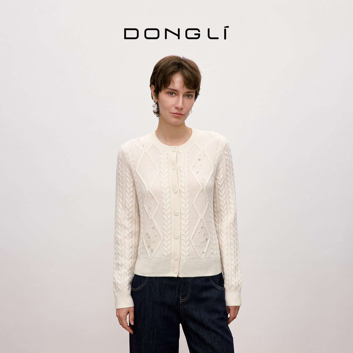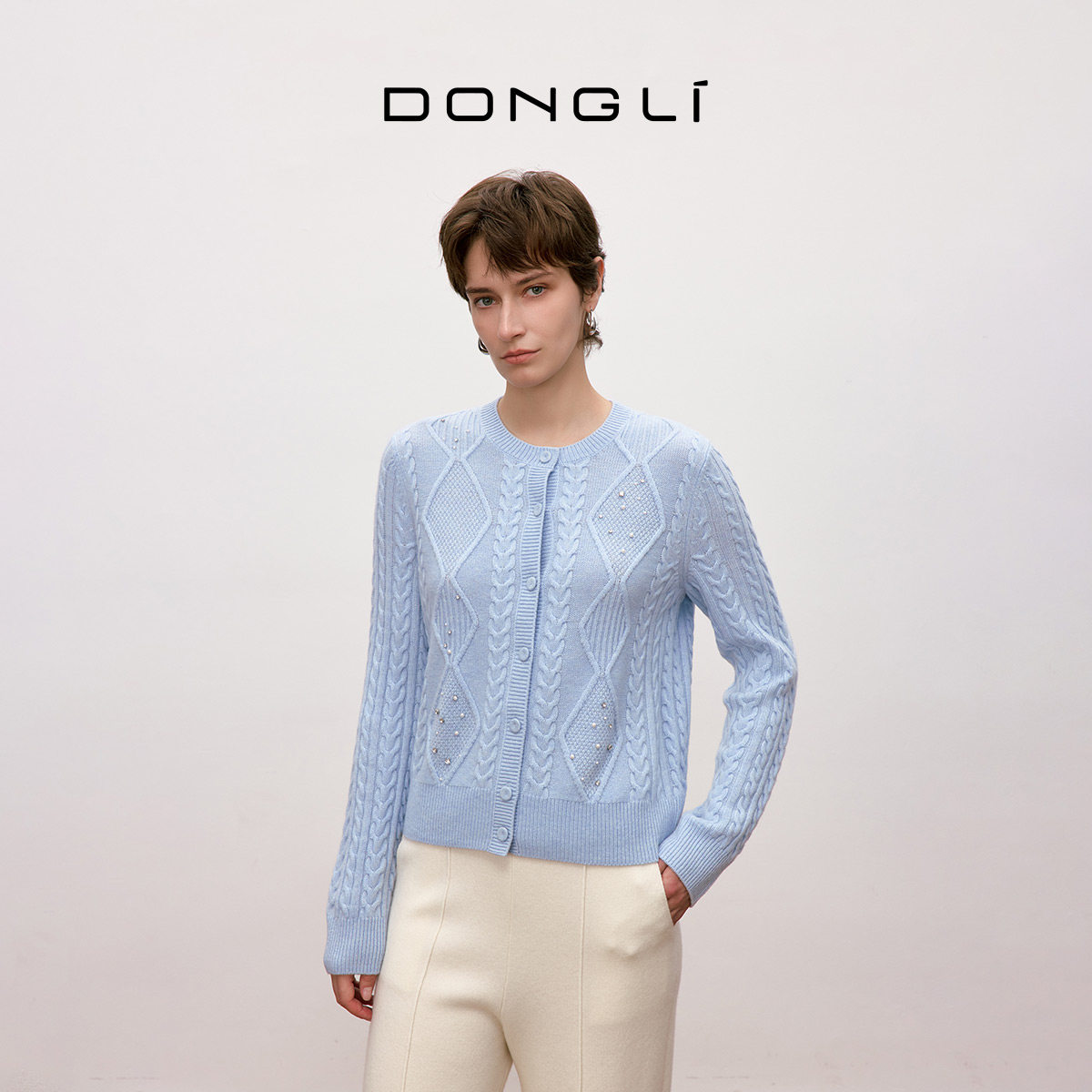 你本珍贵 外套 晨露 菱格绞花开衫 5421 女士圆领针织衫 东黎山羊绒