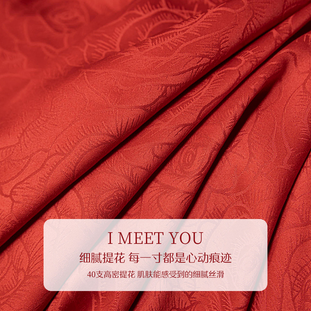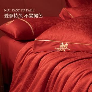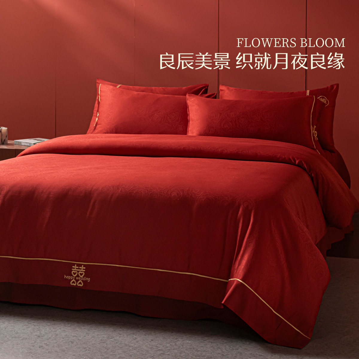 红豆结婚四件套婚庆红色纯棉床上用品喜庆床单婚嫁喜被新婚被套