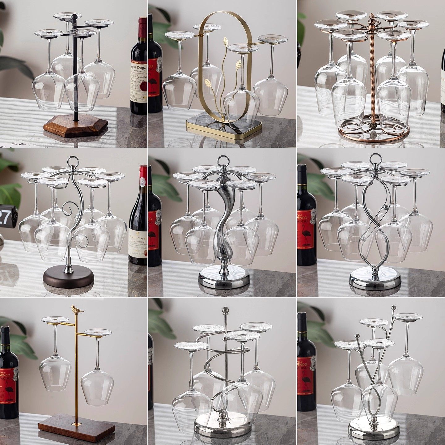 家用红酒杯架酒柜红酒架摆件葡萄酒装 饰倒挂酒瓶架子现代轻奢酒架