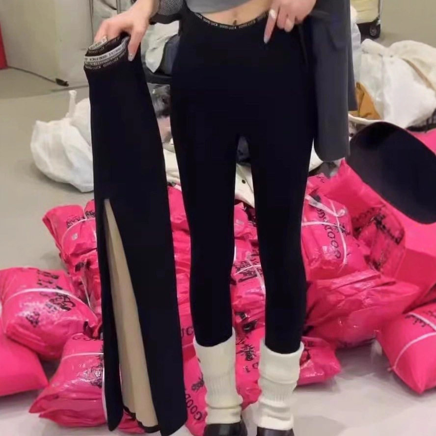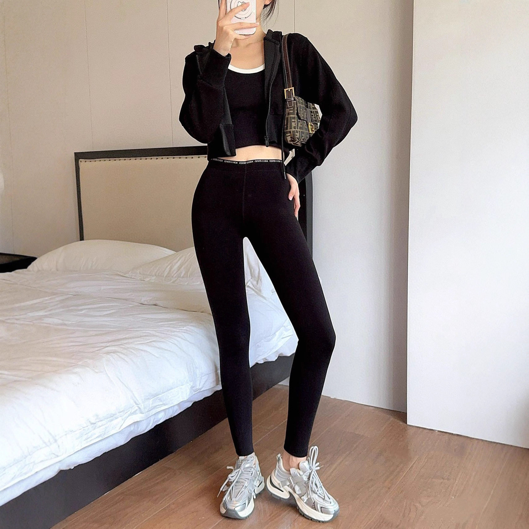350克 保暖九分外穿打底裤 2025秋冬加绒加厚字母腰云朵裤 发财裤