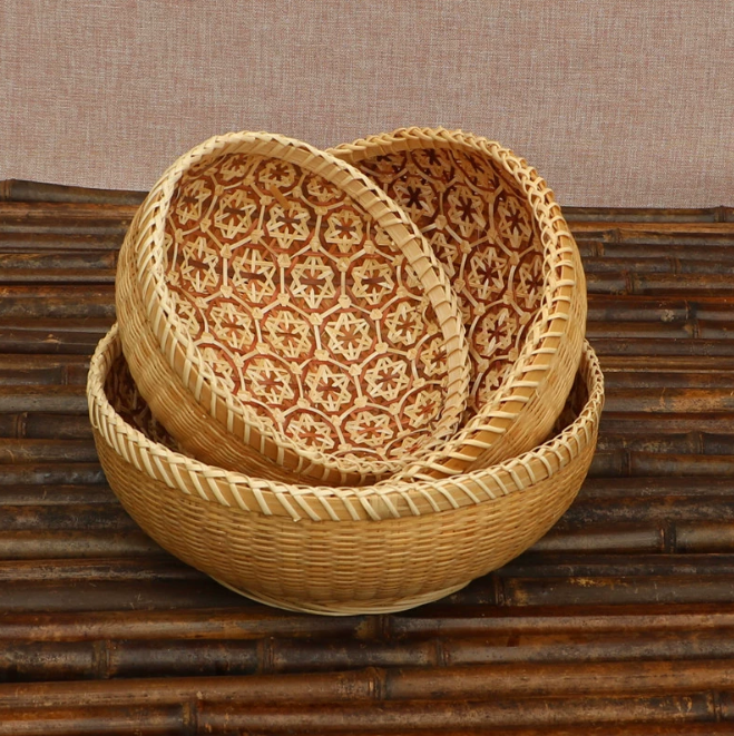 竹编簸箕馒头筐收纳竹编篮子竹筐洗菜沥水淘米竹盘果篮箩筐竹制品