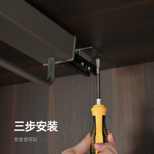 NUOMI诺米衣柜顶装 架伸缩挂衣杆衣架抽拉滑轨衣橱拉篮 阻尼收纳裤