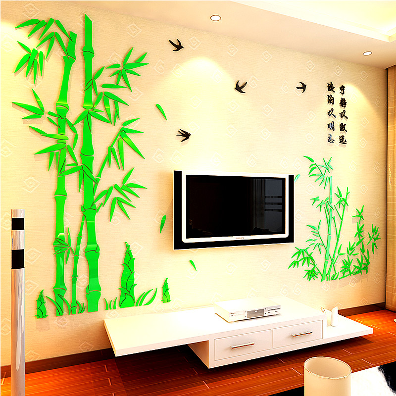 竹水晶d立体墙贴画电视背景墙餐客厅玄关卧室沙发墙装 饰品