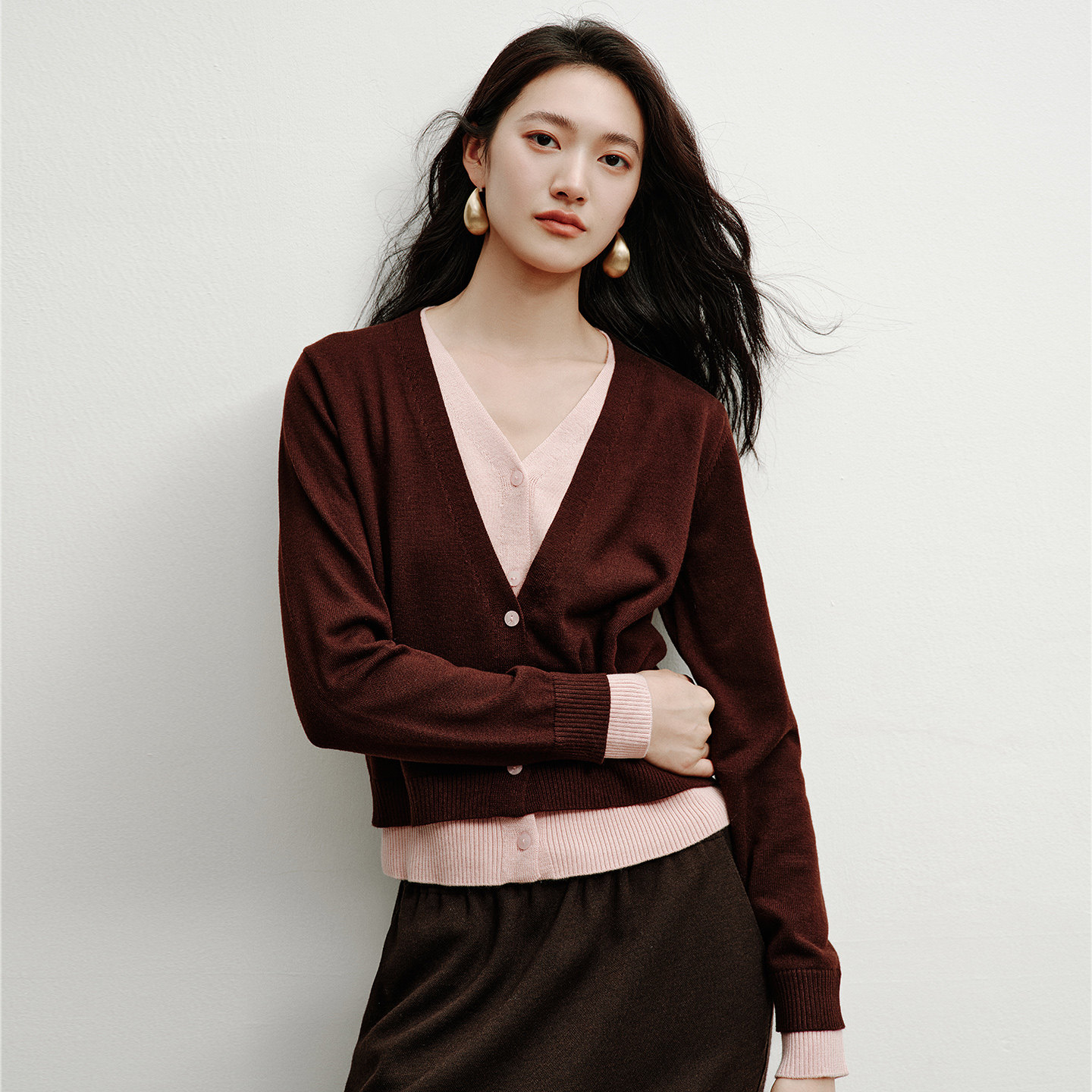 韩系时尚 新款 羊毛上衣 女2025年秋冬装 衣香丽影撞色假两件针织开衫
