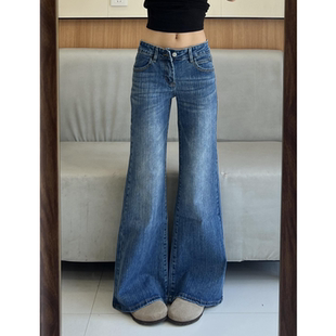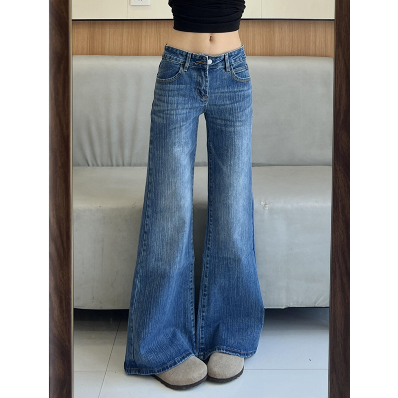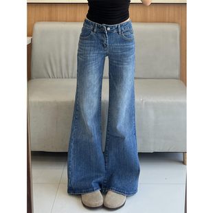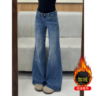小个子加绒加厚低腰宽松显瘦喇叭阔腿长裤 竹节纹微喇牛仔裤 女冬季