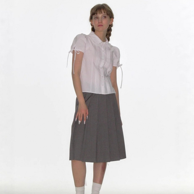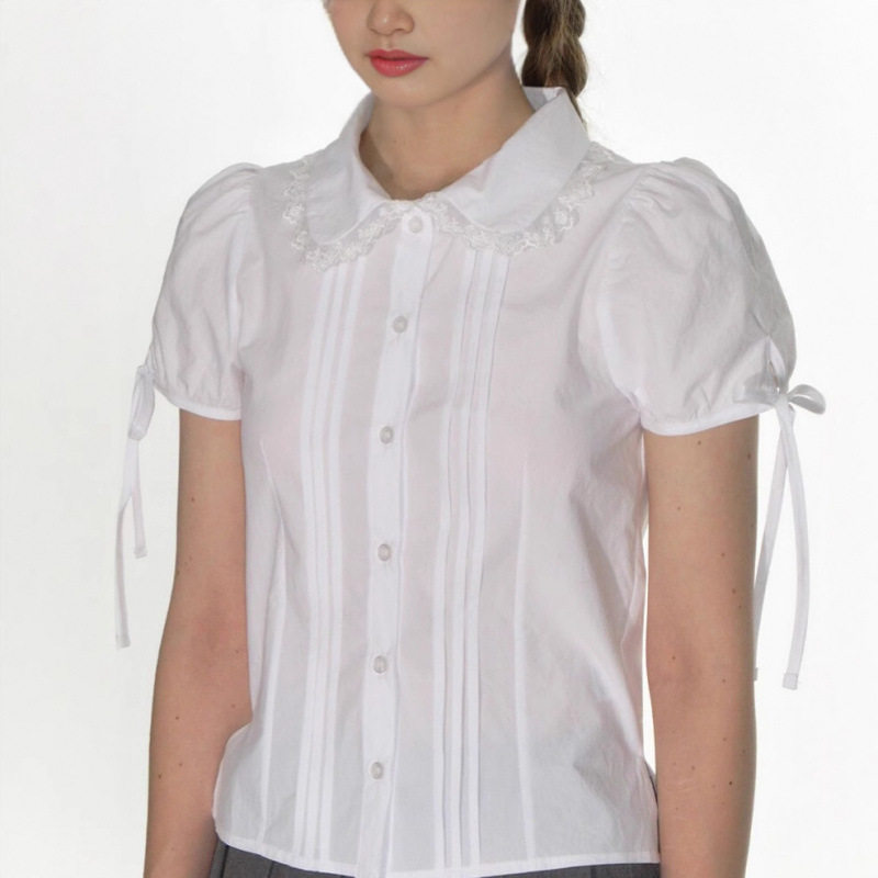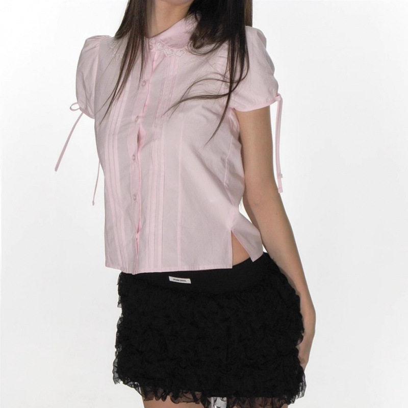 女 衬衫 gidle赵美延同款 CRANK韩国小众潮牌蕾丝花边系带蝴蝶结短袖