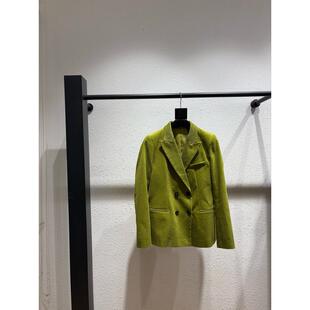 绿色短外套女V领纽扣百搭显瘦气质外套温柔慵懒风收腰设复古港风