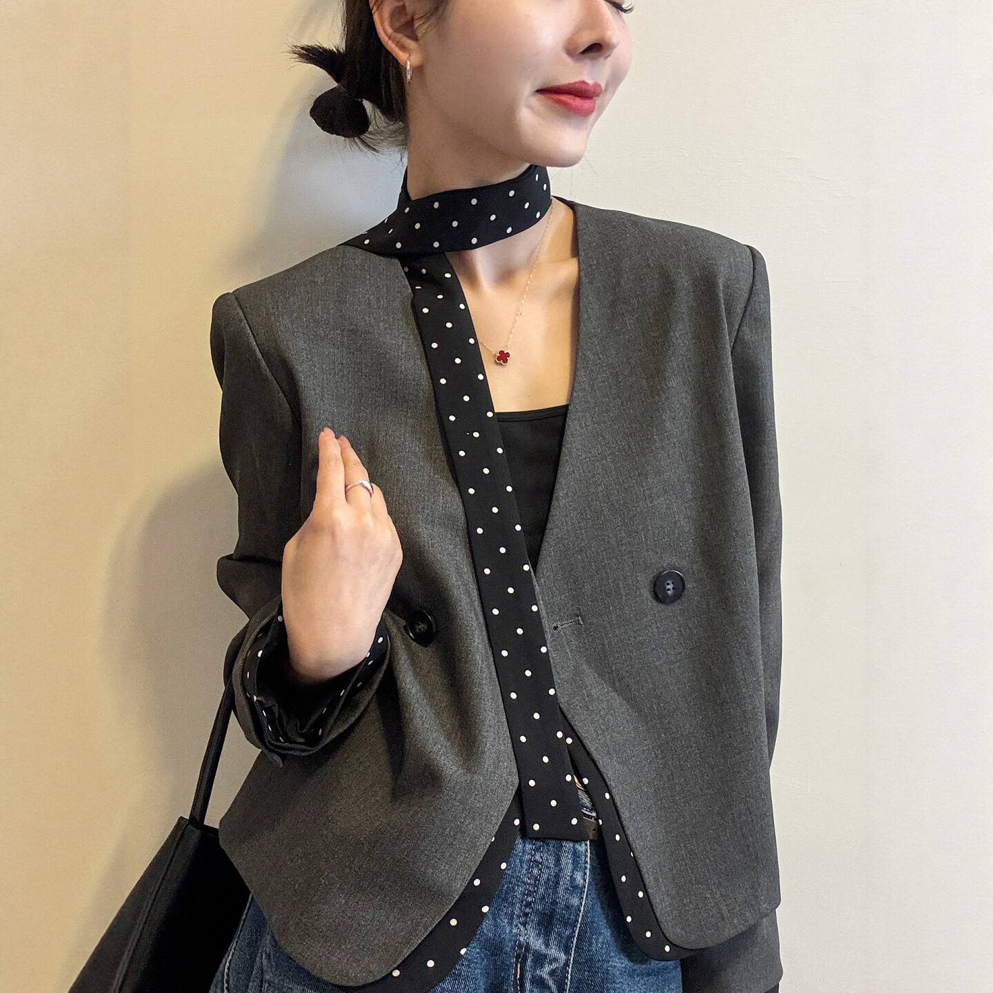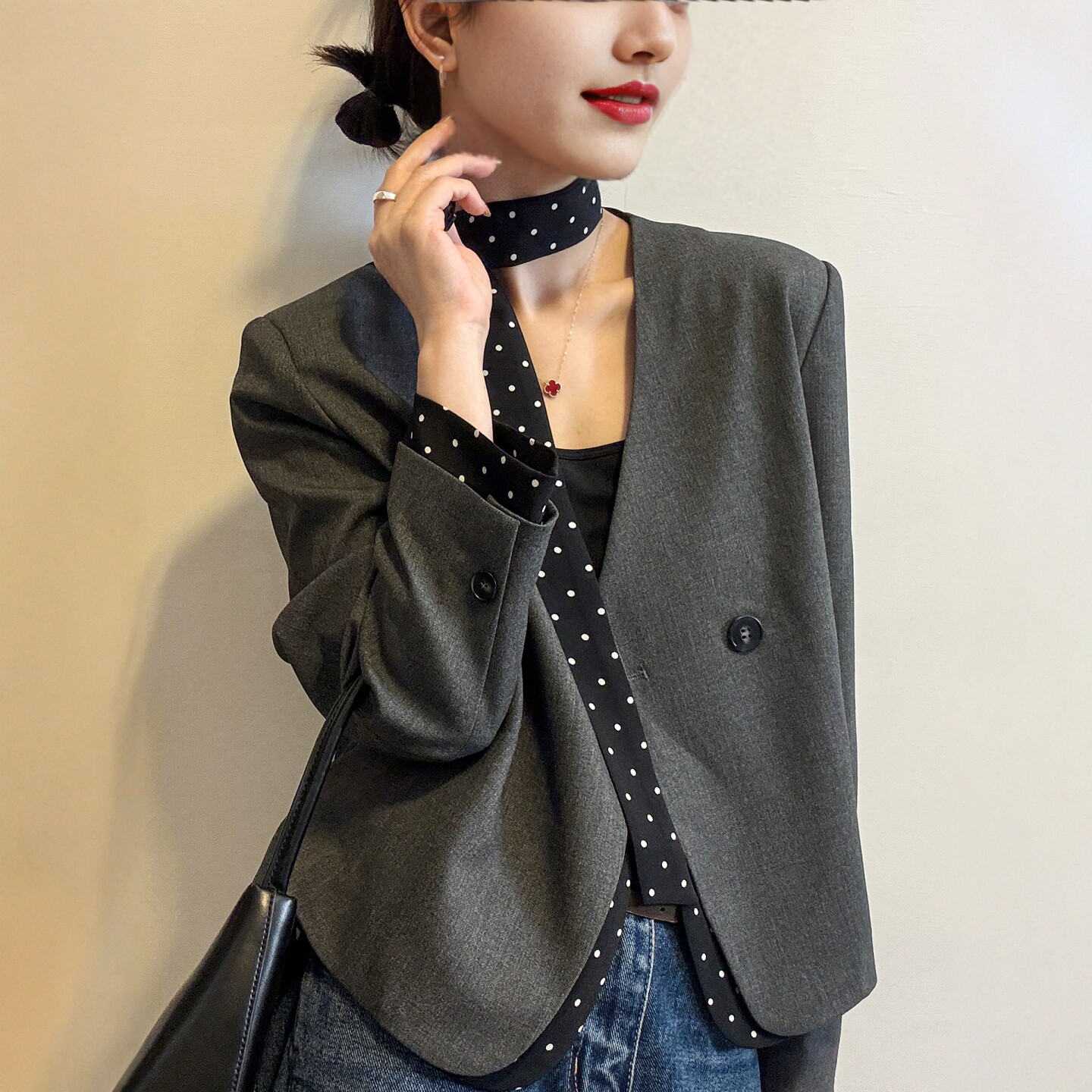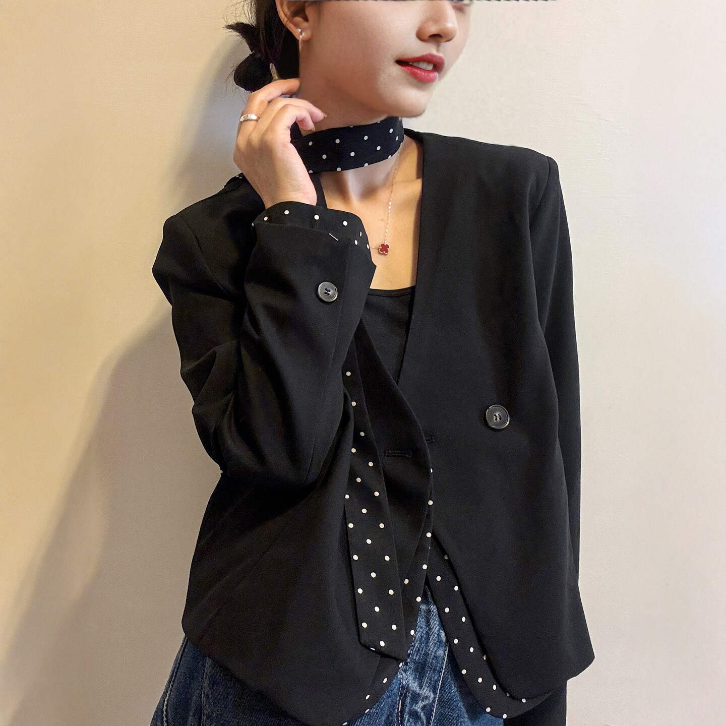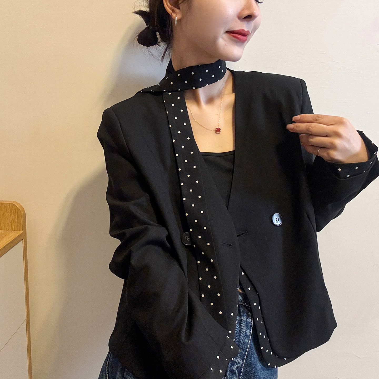 时尚 波点飘带小西装 欧货女装 新款 休闲西服潮 外套女欧洲站2026春装