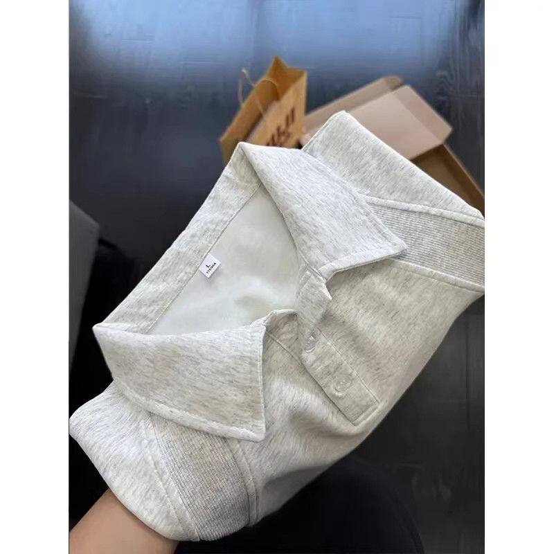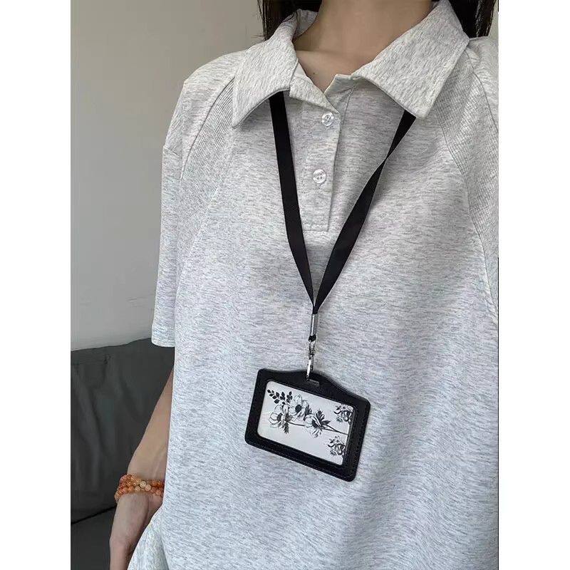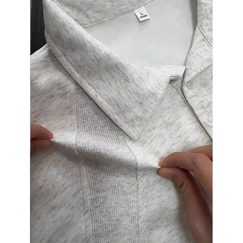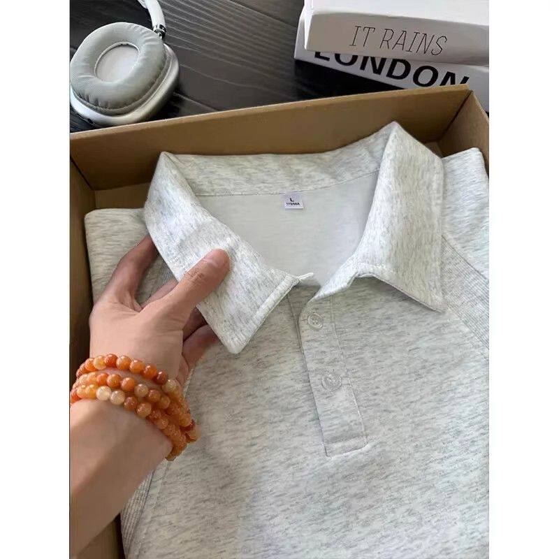 潮牌痞帅重磅翻领设计感拼接解构上衣 男夏季 白灰色正肩短袖 POLO衫