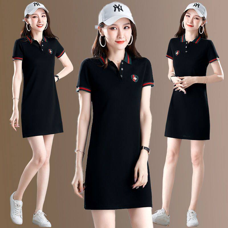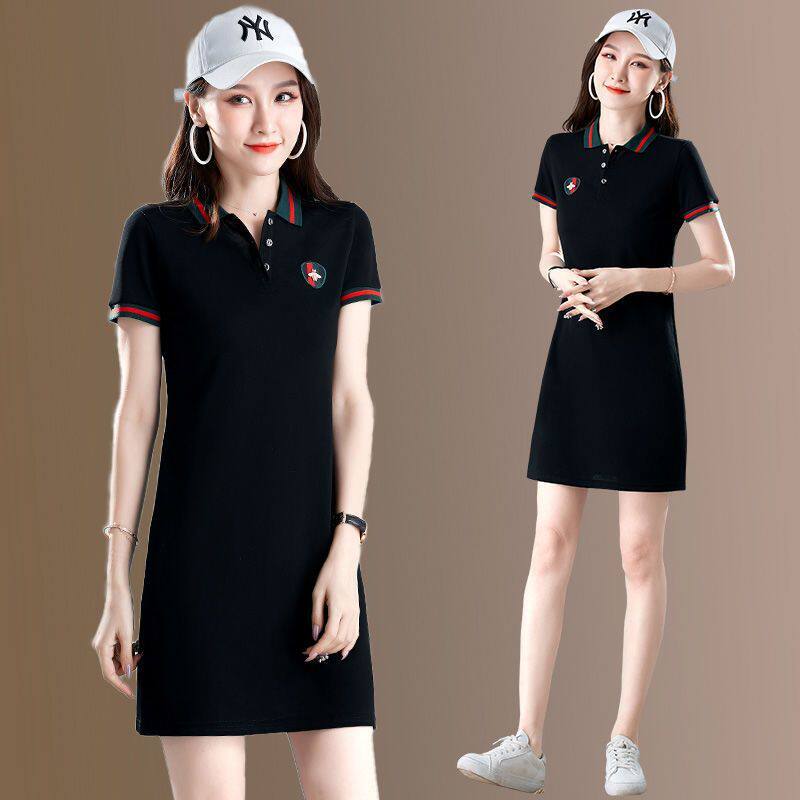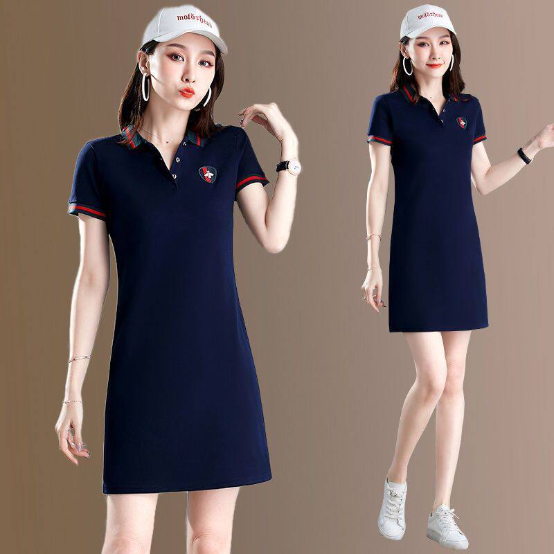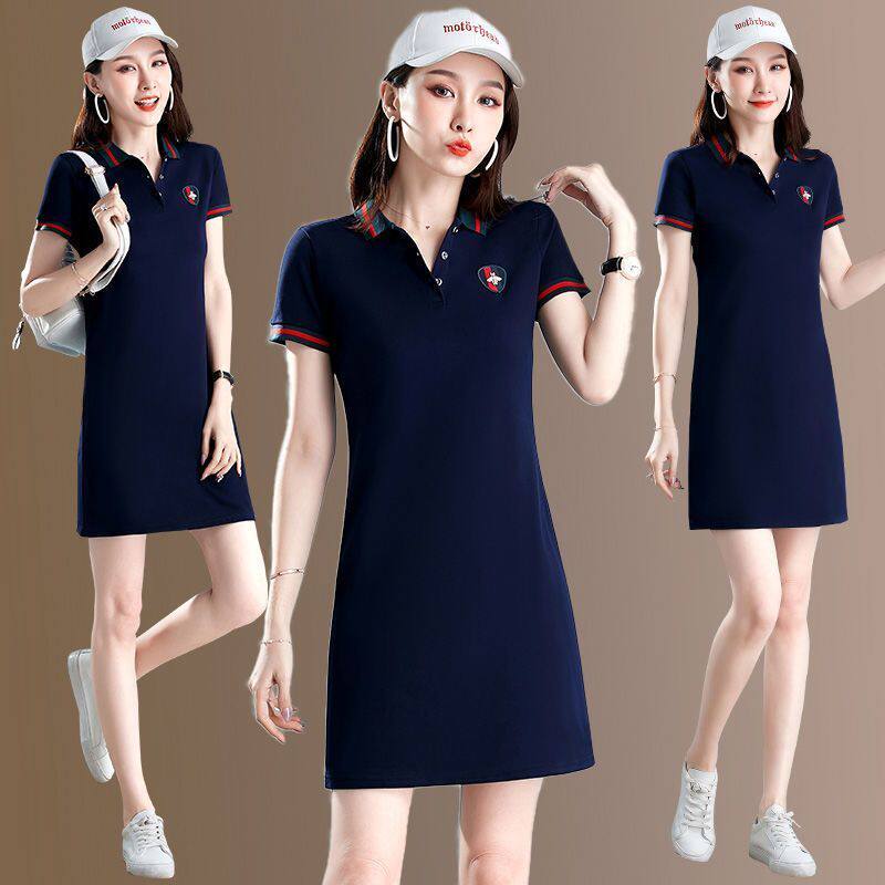 t恤女运动休闲连衣裙 上衣女夏显瘦百搭收腰显瘦短袖 polo衫 中长款