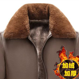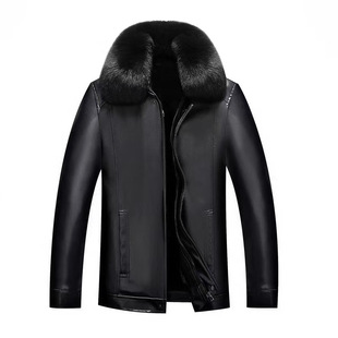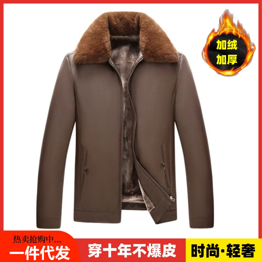pu皮夹克加绒加厚2024冬季 中老年皮衣男新款 皮毛一体男外套爸爸装