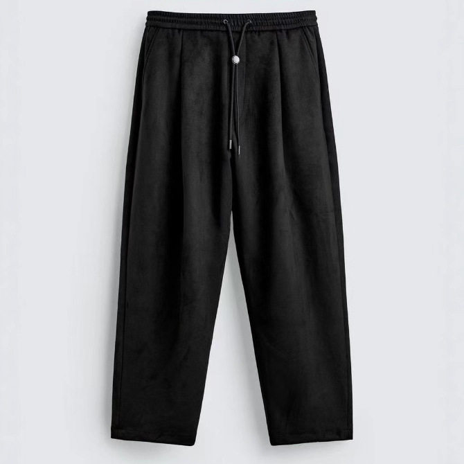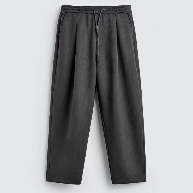 3046385 反绒皮效果宽松阔腿带褶休闲裤 TAOP&ZA秋冬新款 男装