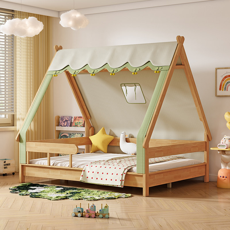 全实木儿童床男孩木屋单人床1.2米1.5儿童房女孩带护栏树屋帐篷床