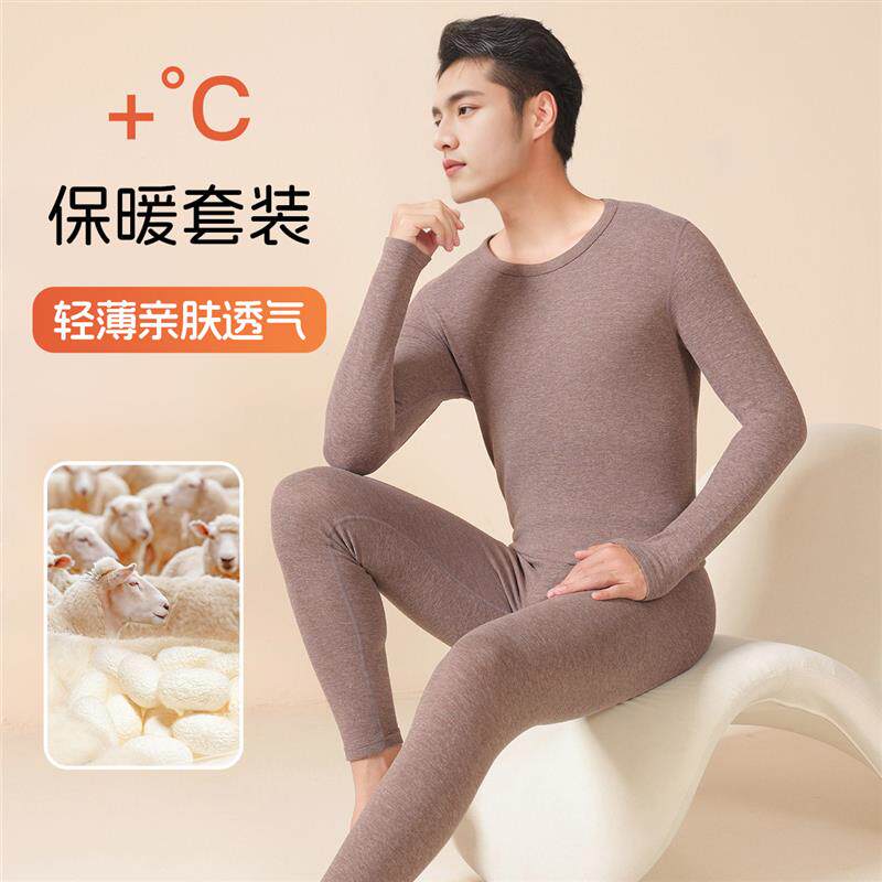 套装 秋冬季 加绒加厚秋衣秋裤 青中年打底线衣线裤 男款 保暖内衣男士