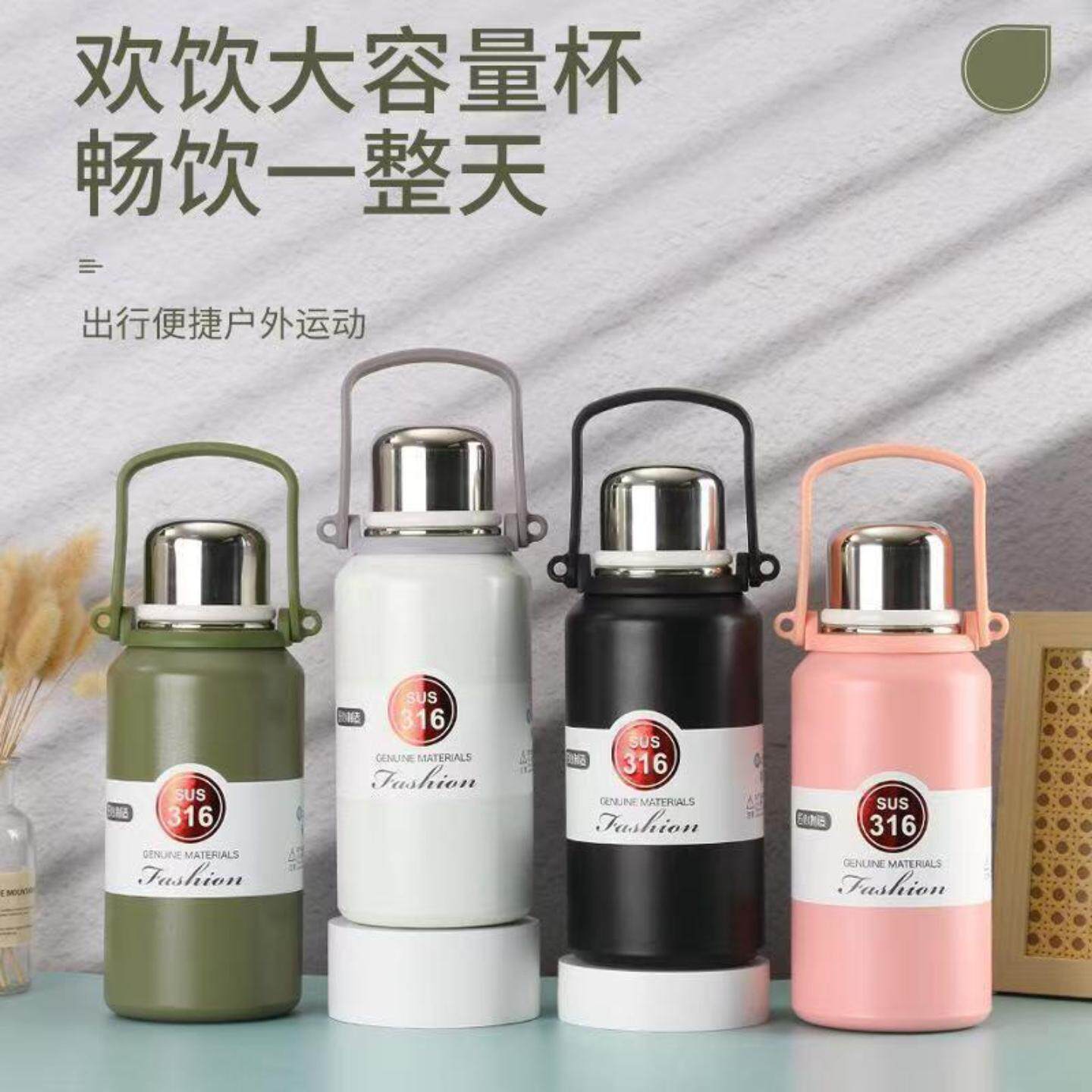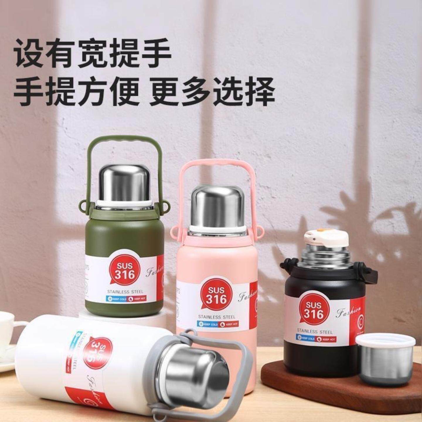 女生不锈钢保温杯大容量户外运动水壶高颜值带提手金刚壶