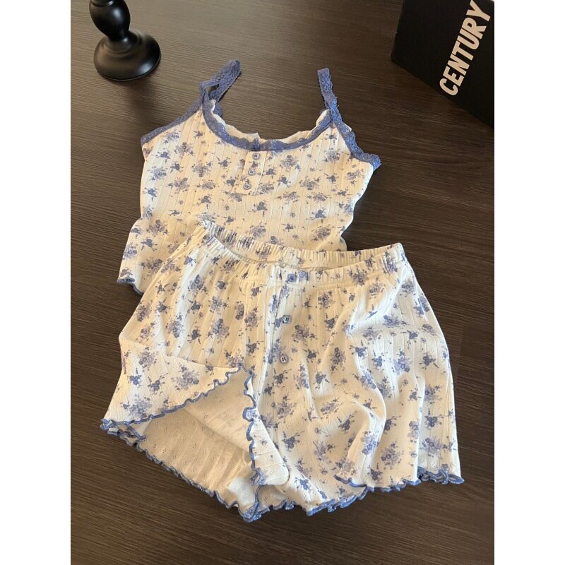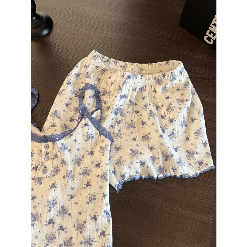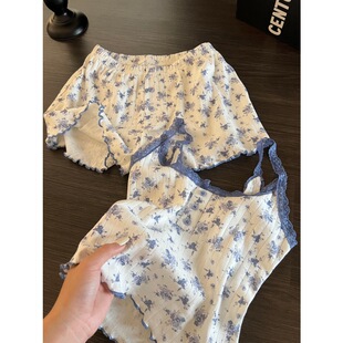 家居服套装 纯欲吊带短裤 2026夏款 日系ins甜美蕾丝小碎花睡衣女款