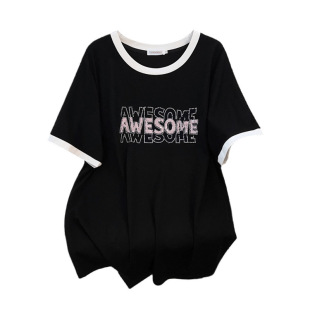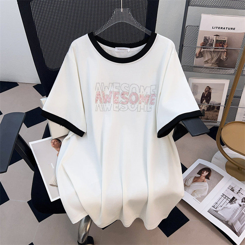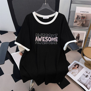 显瘦宽松中长款 加肥加大码 短袖 T恤女200 350 2026新款 300 圆领新款