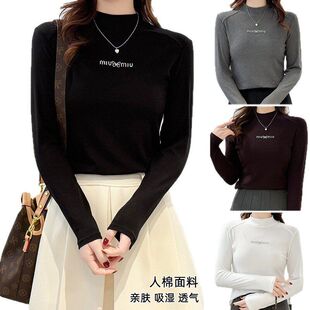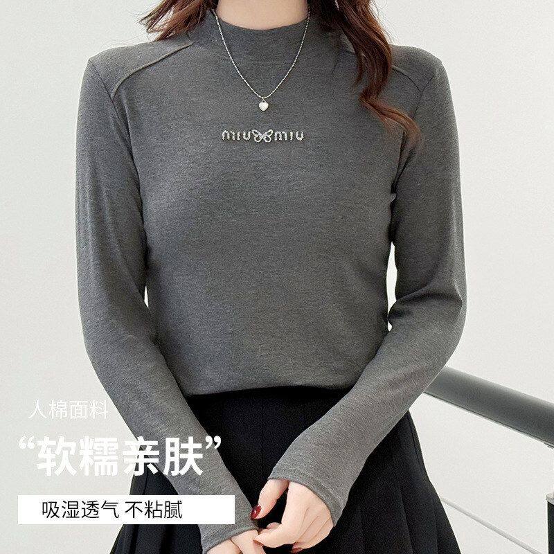 显瘦正肩长袖 修身 打底t恤女 蝴蝶钻内搭上衣女春秋打底衫 2026新款