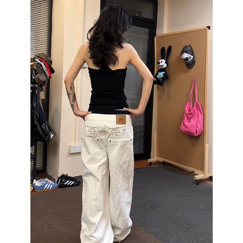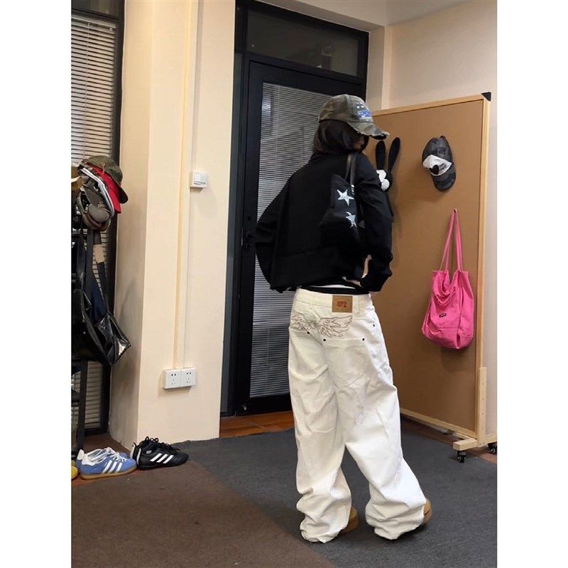 设计感直筒休闲 覆古刺绣水洗弯刀牛仔裤 阔腿百搭长 美式 F383