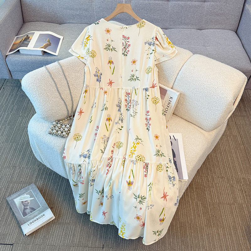女装 300斤大码 V领长裙270胖mm甜美显瘦碎花连衣裙240 新品 2026夏季