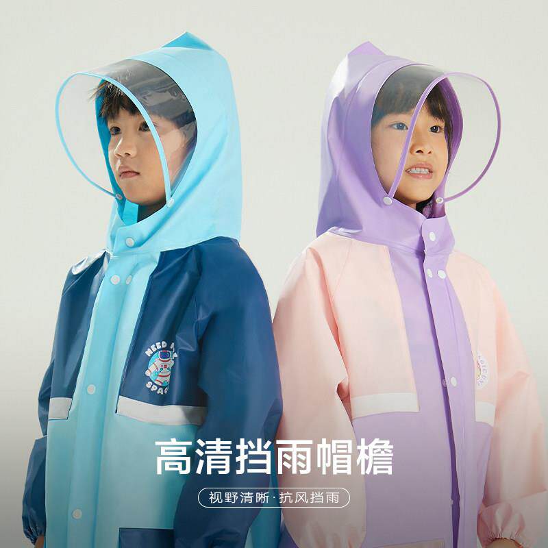 儿童雨衣男孩女孩小学生上学专用带书包位男童女童中大童防雨雨披