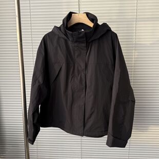 冲锋衣休闲宽松连帽短上衣外套夹克484709 新款 女装 防风立领茄克