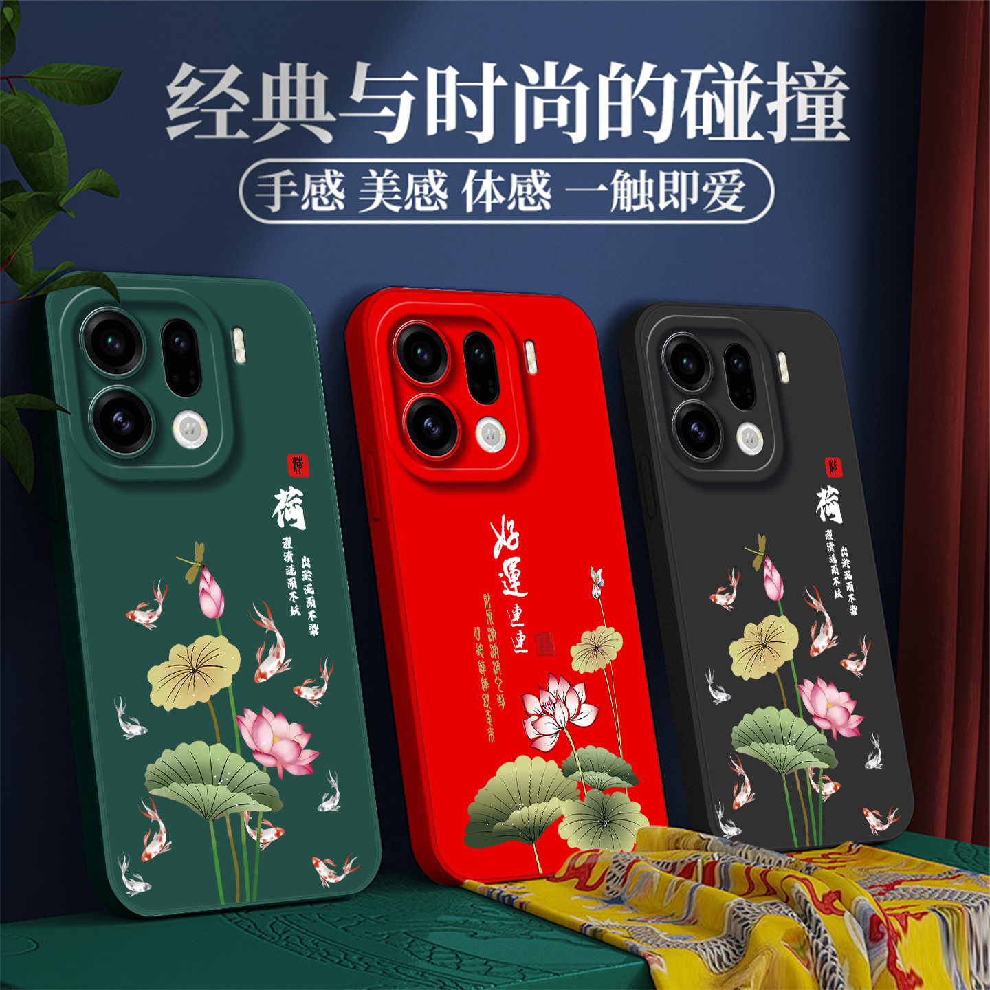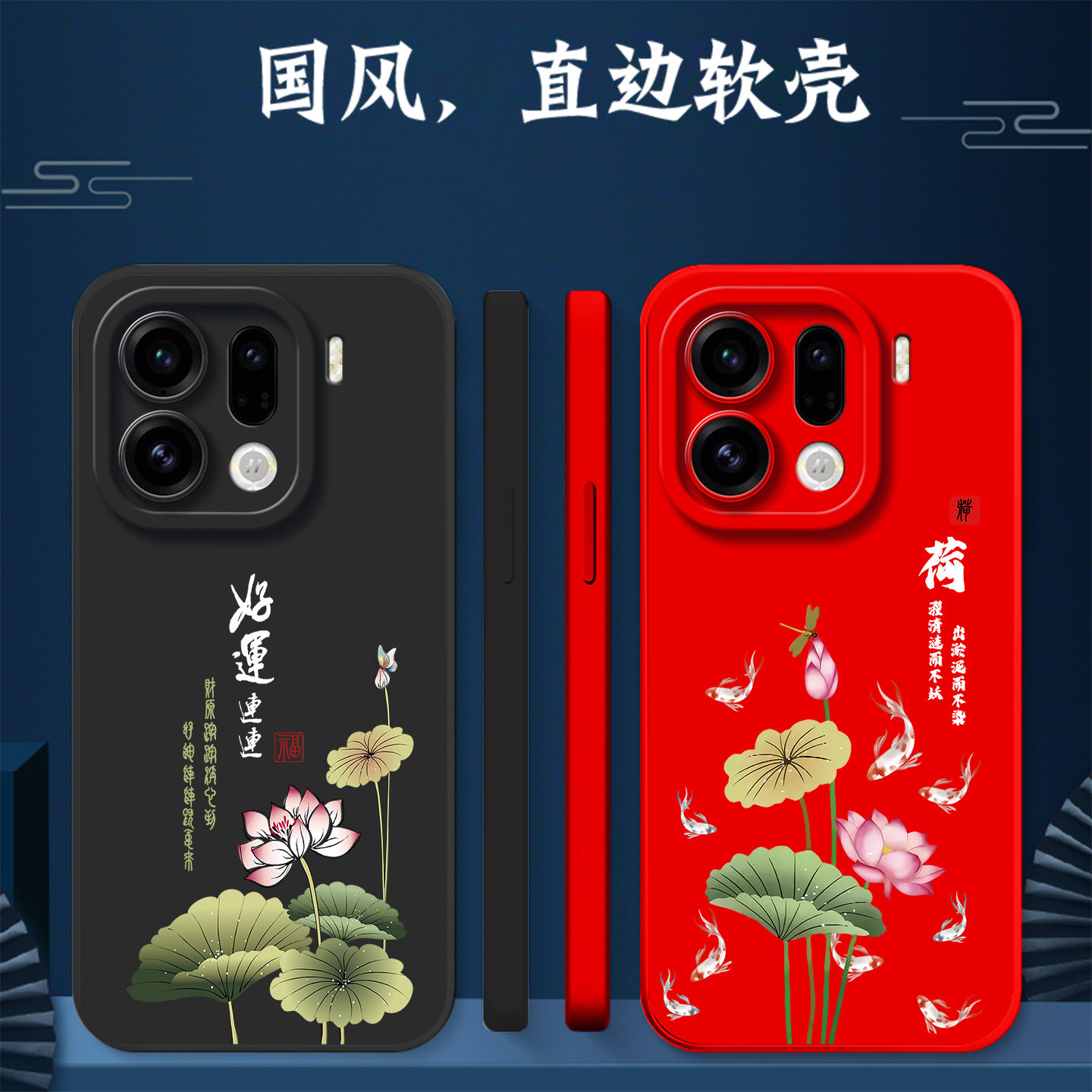 克莱因蓝简约中国风 PLG110软壳欧珀findx9pro保护套0pp0find×9pro全包防摔新款 适用oppo Findx9pro手机壳