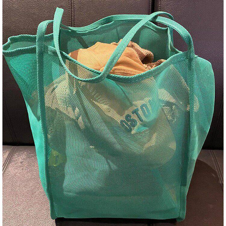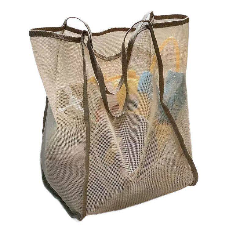 新款 轻便大容量百搭购物袋网格沙滩包 ins风透明网纱单肩挎包时尚