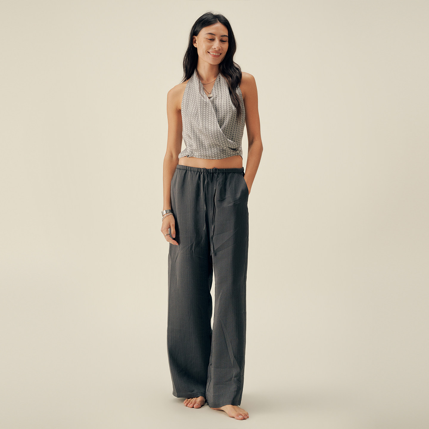 三所vintage 山所进口限量真丝月岩灰暗纹直角肩挂脖设计感上衣