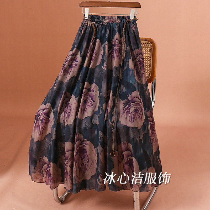 复古水墨印花半身裙女2026春季 波西米亚风飘逸大摆裙长裙半裙 新款