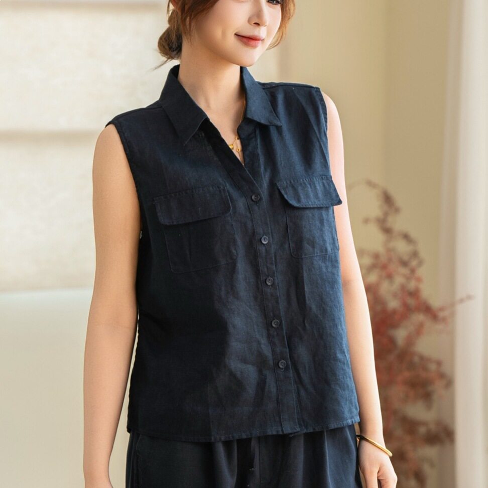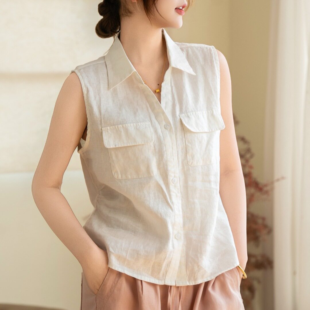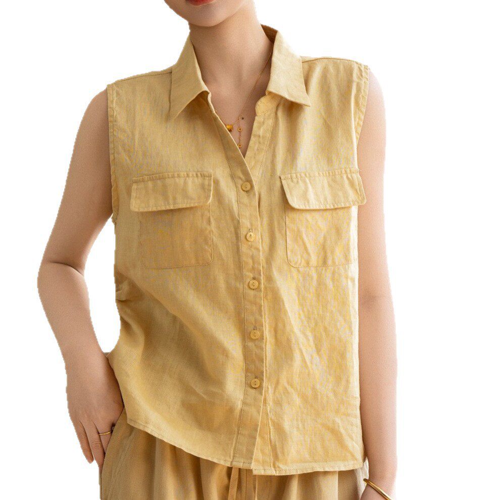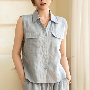 新款 女2026夏季 文艺时尚 纯色翻领中袖 园园美衣袖 宽松马甲开衫 衬衫