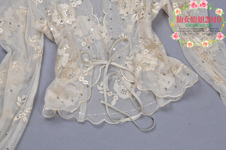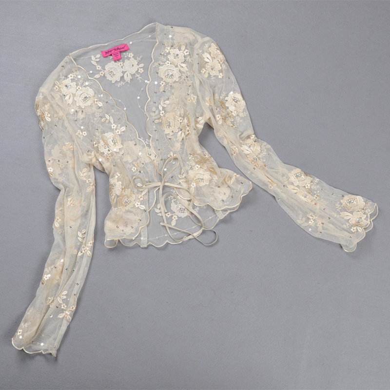 刺绣小披肩百搭外搭开衫 蕾丝亮片坎肩正品 夏季 防晒衣长袖 薄款 新款
