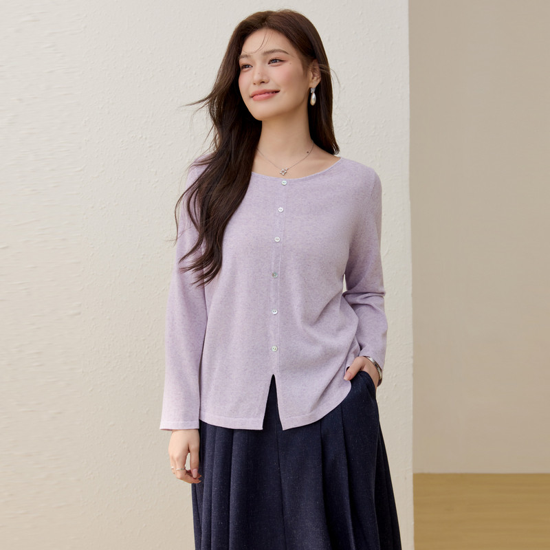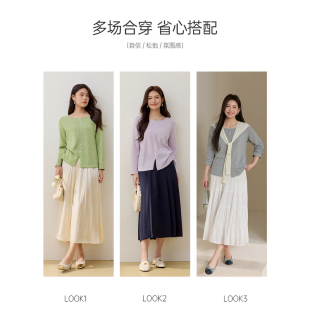絮语 胖mm2026夏装 亚麻混纺开叉设计针织衫 女装 新款 纤莉秀大码