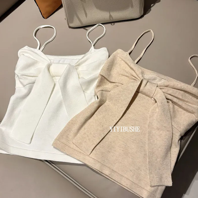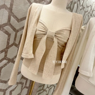 针织开衫 韩国代购 纯欲蝴蝶结吊带 LU323韩系巨好看 两件套 正品