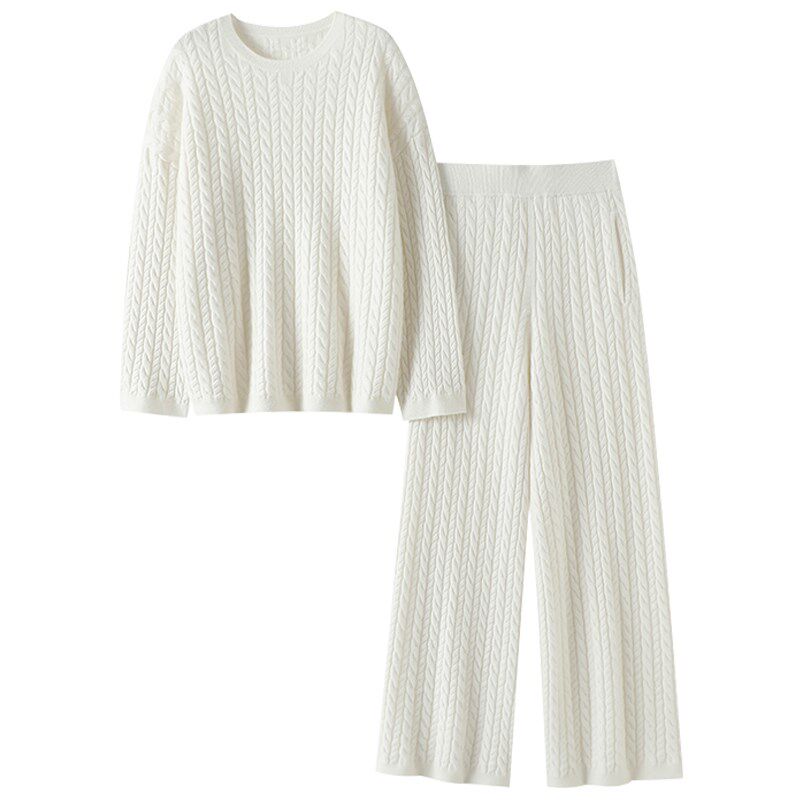 子女套装 女圆领针织休闲直筒裤 加厚100%纯山羊绒衫 启超气质逆天
