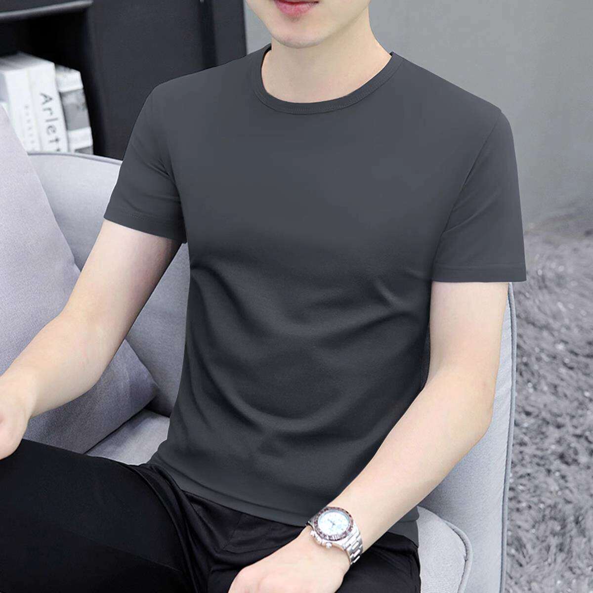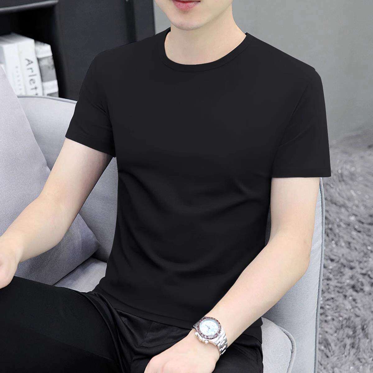 白色短袖 圆领纯色高端冰丝大码 t恤男士 修身 体恤 纯棉2026新款 夏季