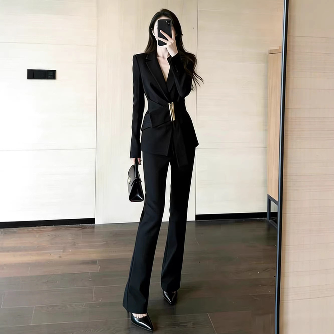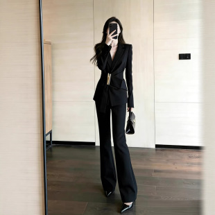 裤 高级感西装 子两件套大码 胖MM气质微喇裤 200斤 春装 西服套装 新款