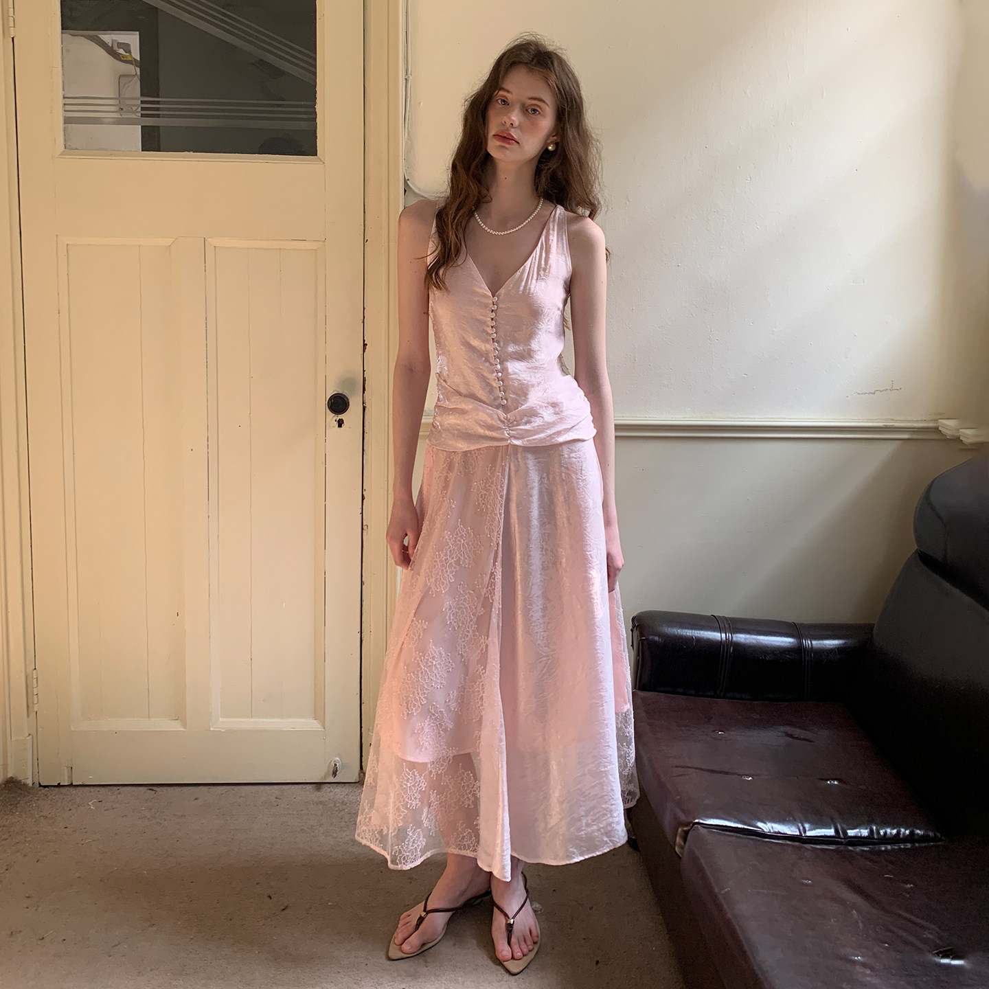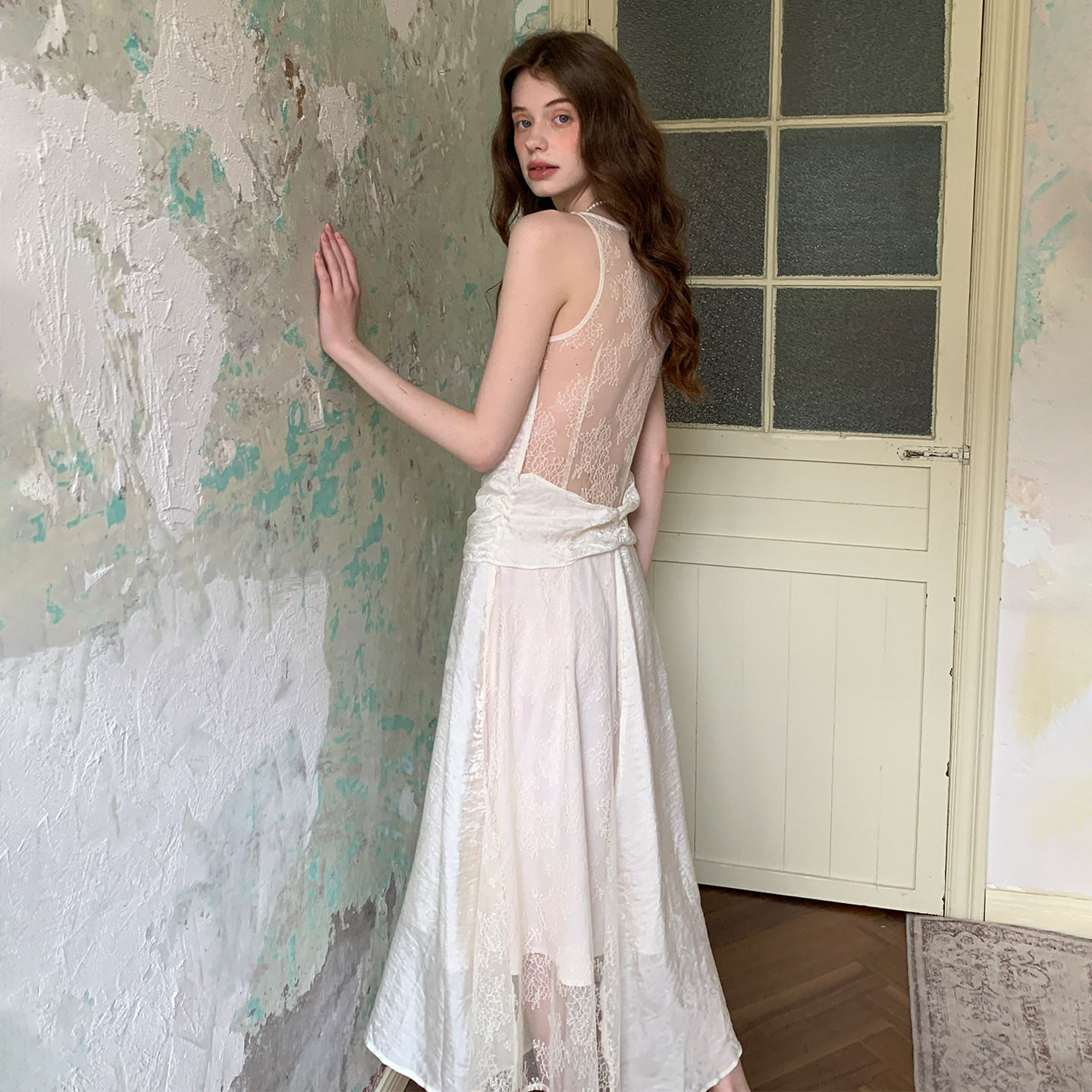 11点新款 法式 春季 ZHUYIYI 连衣裙女春款 薄纱蕾丝背心式 原创
