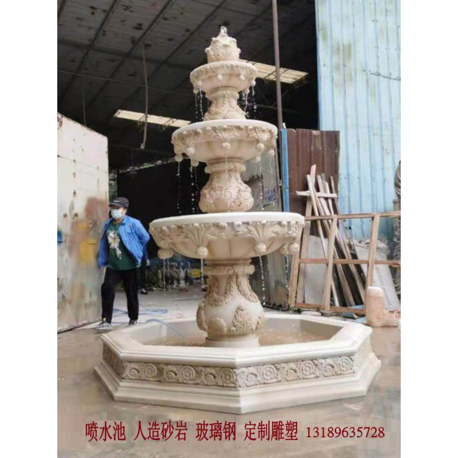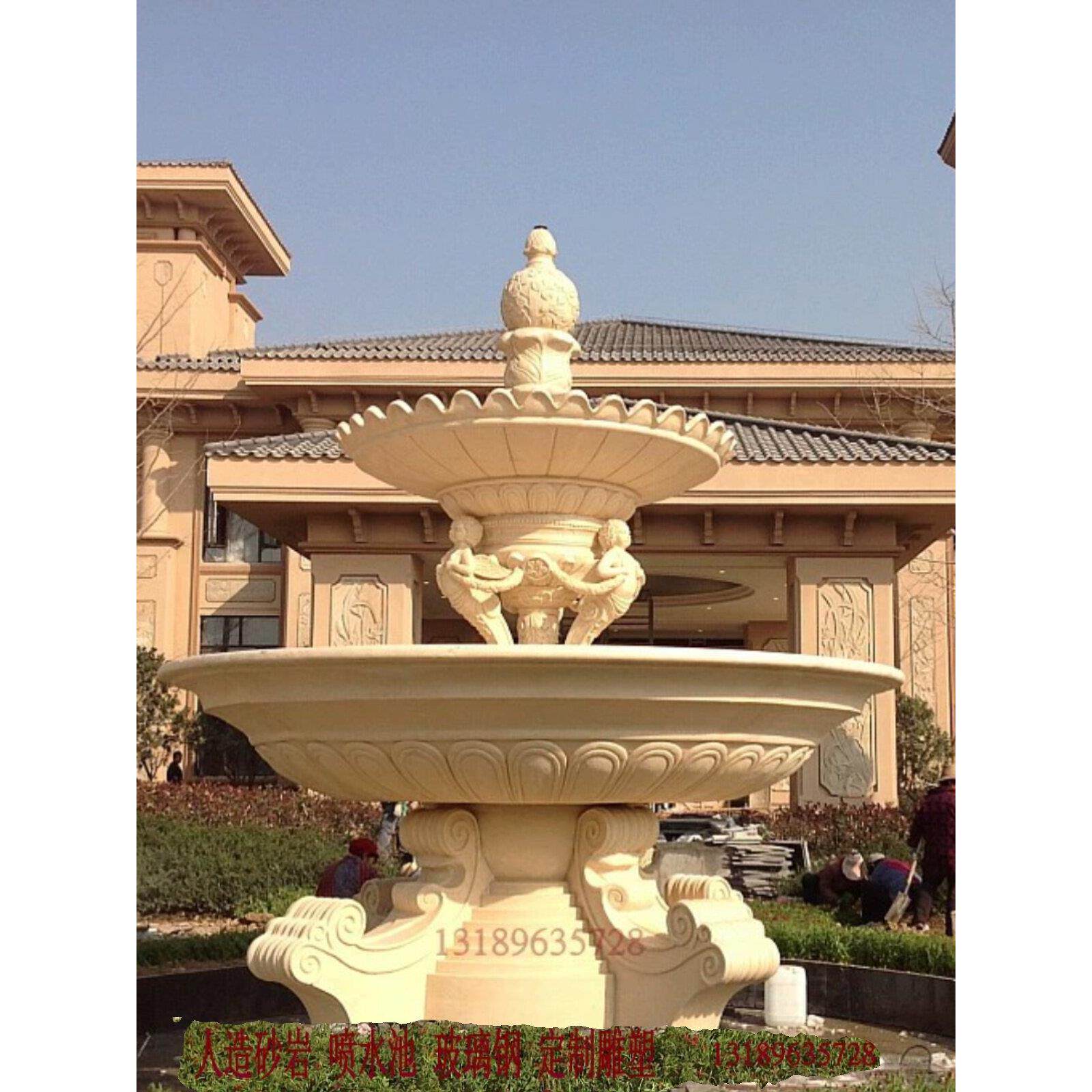 泽丰人造砂岩喷水池欧式 雕塑花钵喷泉水泥雕塑玻璃钢材质人物浮雕