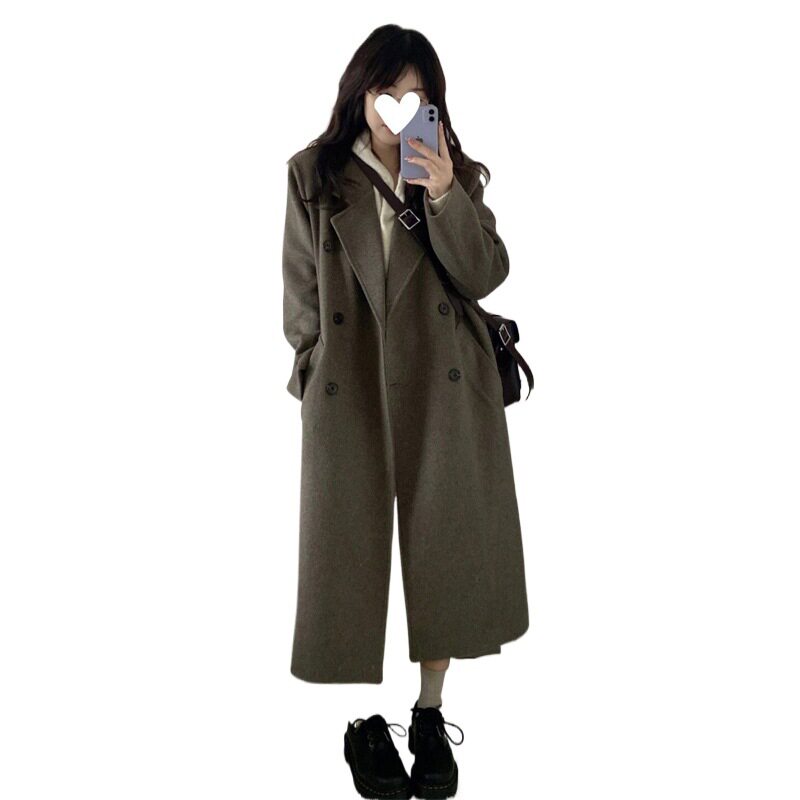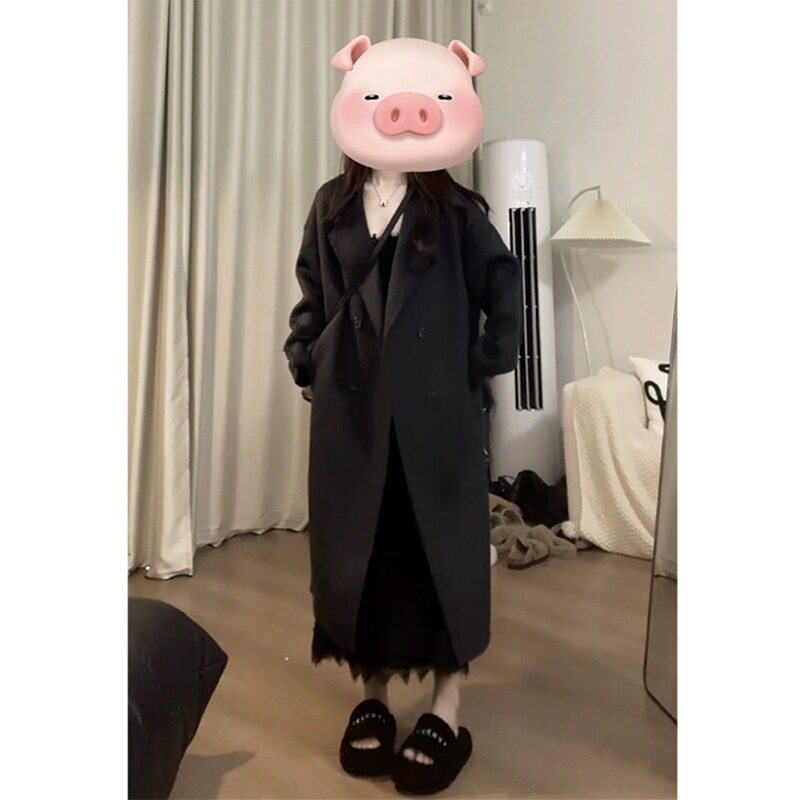 黑色呢子大衣女高级感加棉毛呢外套2026秋冬新款 小个子赫本风韩系