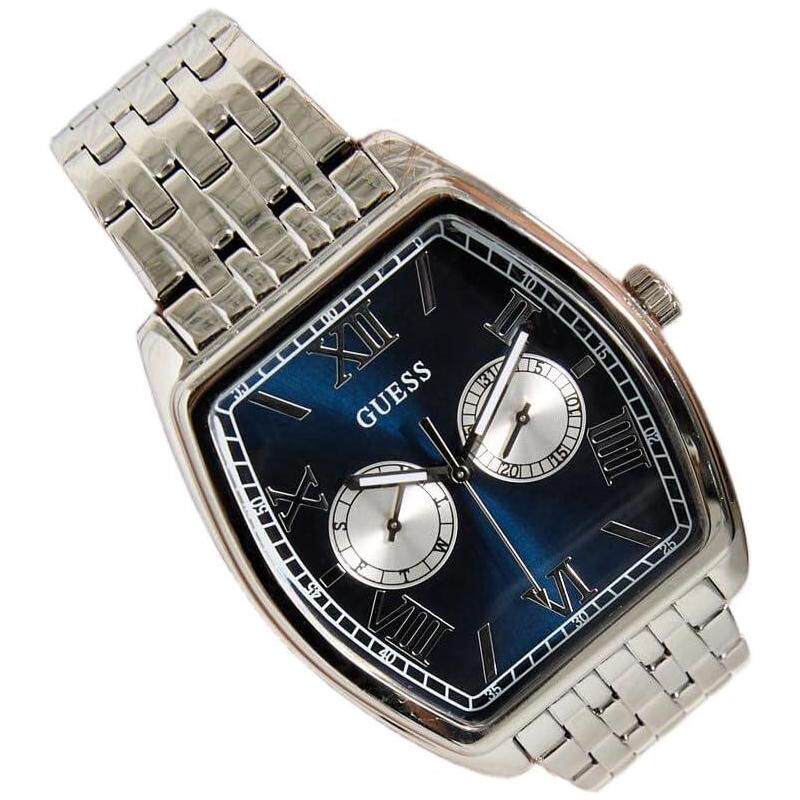 代购 腕表计时日期多针夜光金属钢带银色方形商务休闲 GUESS男士