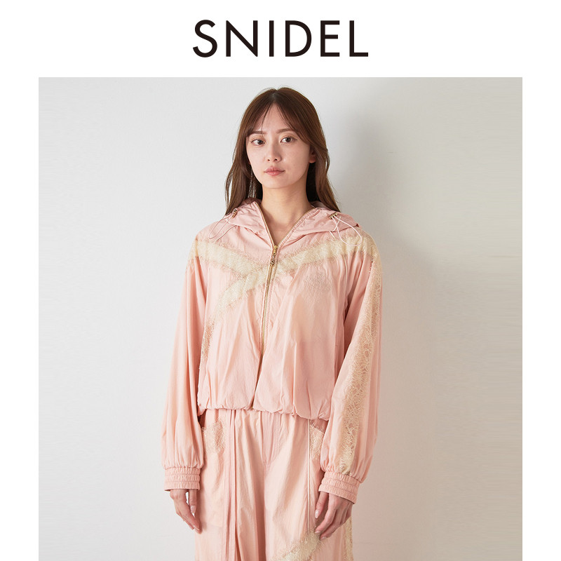 SNIDEL2026春夏新品 外套SWFJ261105 Chacott联名连帽蕾丝刺绣开衫