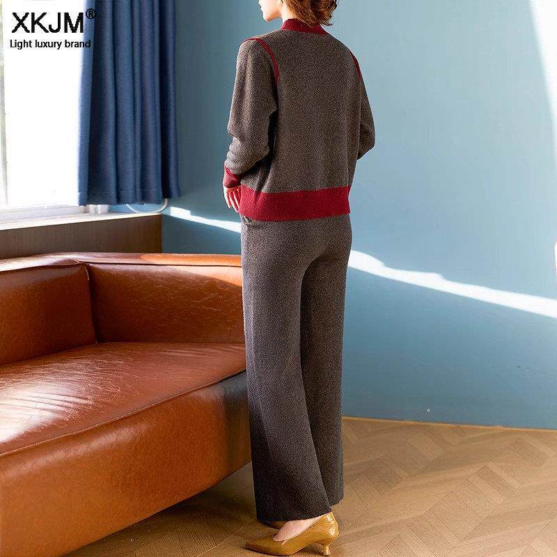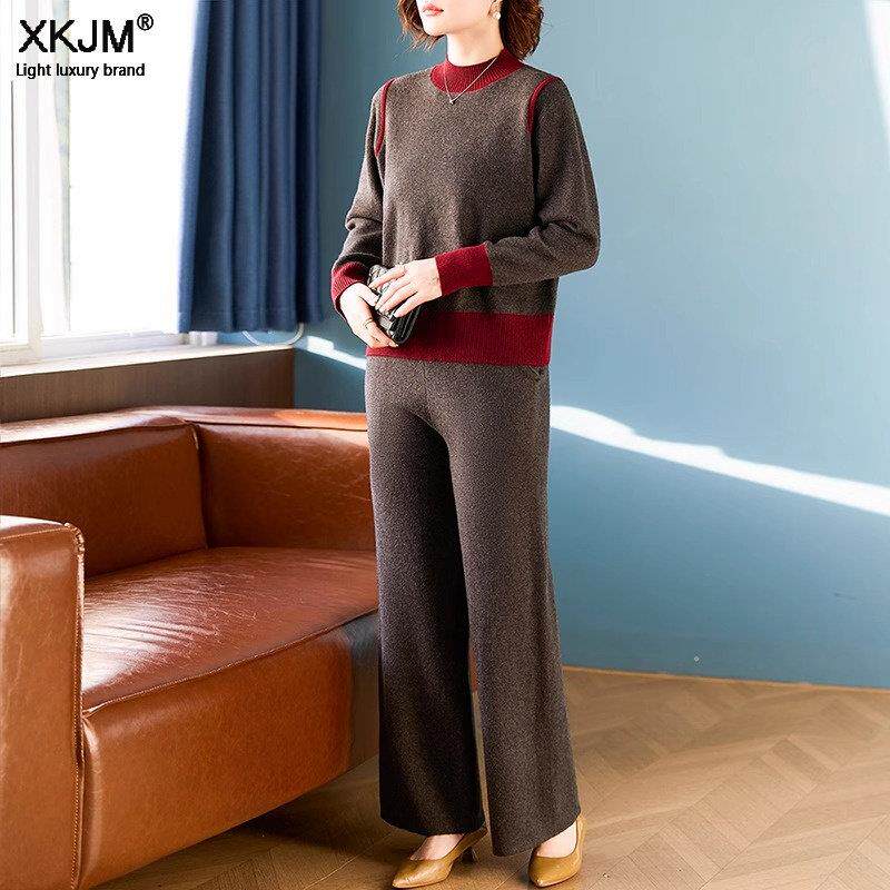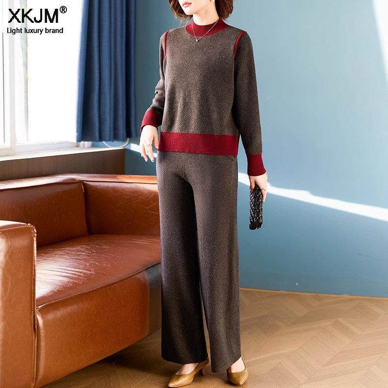 妈妈春秋冬休闲运动服针织套装 中老年女加厚毛衣两件套 2025新款