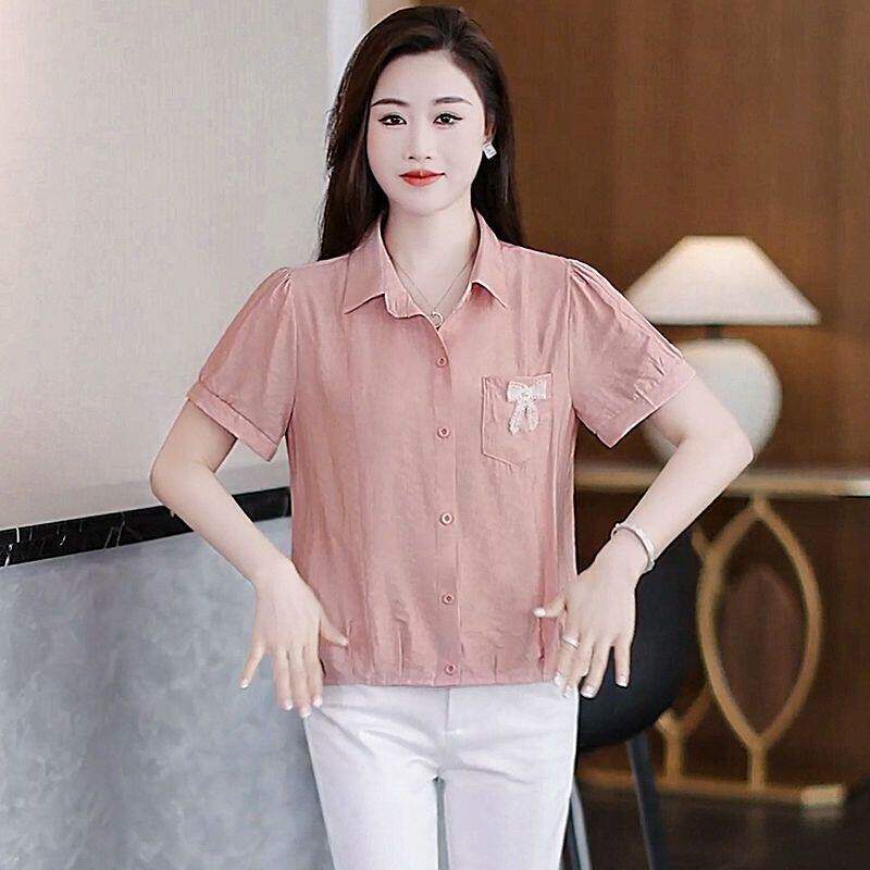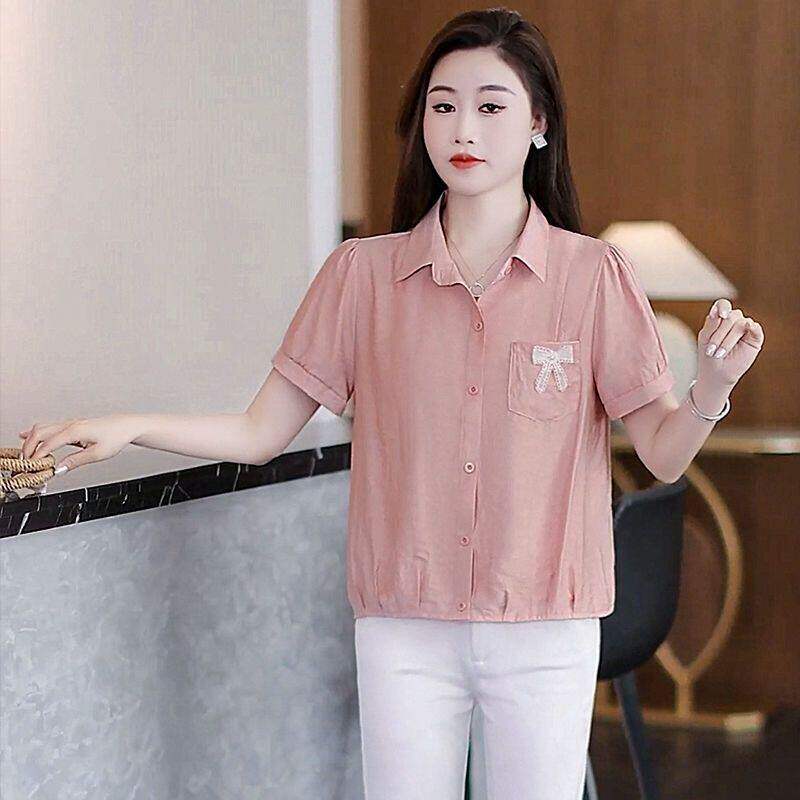 女2026新款 衬衫 洋气短款 上衣漂亮开衫 Polo领时尚 显瘦小衫 减龄短袖