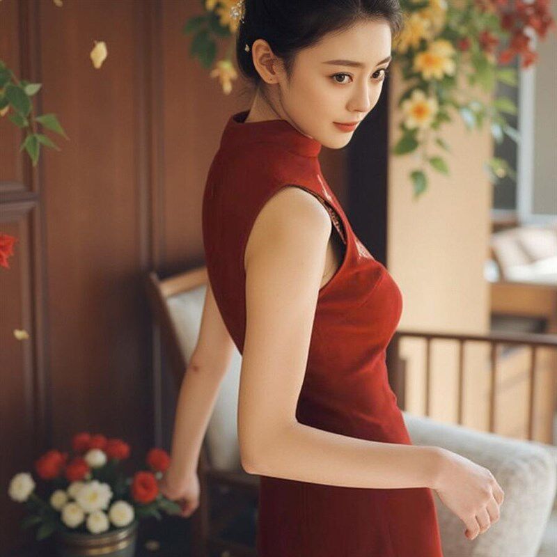 新品 婚礼晨袍敬酒服新娘订婚礼服高端轻Q奢小众红色旗袍连 新中式