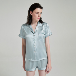 100%桑蚕丝家居服两件套 短裤 蝶绣19姆米重磅真丝睡衣套装 女夏短袖