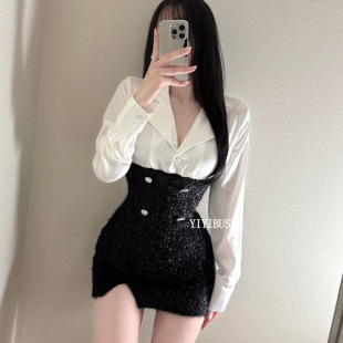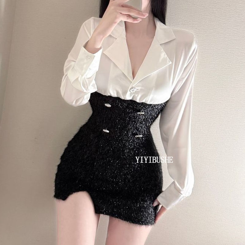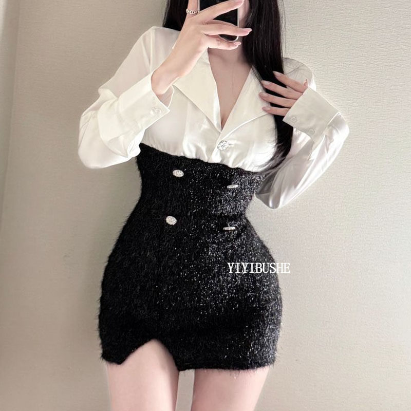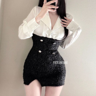 甜辣女人味撞色拼接包臀连衣裙oy LU259韩系高级感 韩国代购 正品