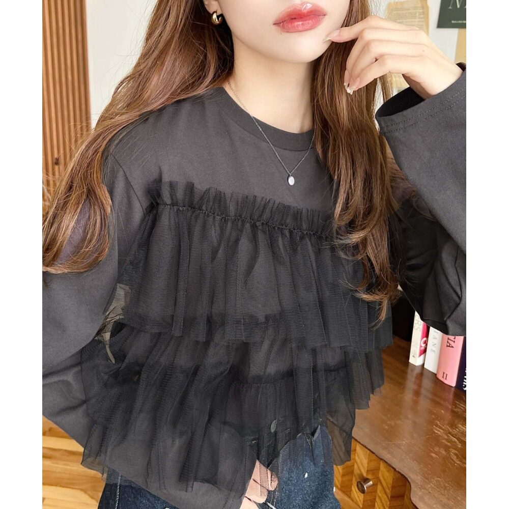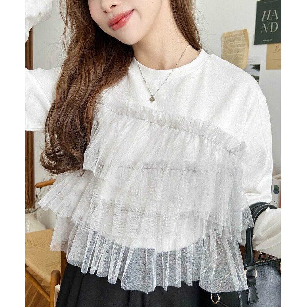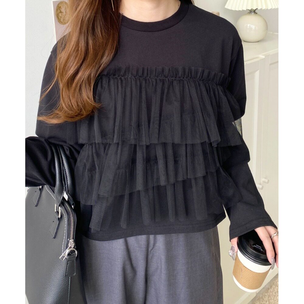 T恤 女士不对称薄纱荷叶边长袖 mt07146 日本直邮moment 1h可退