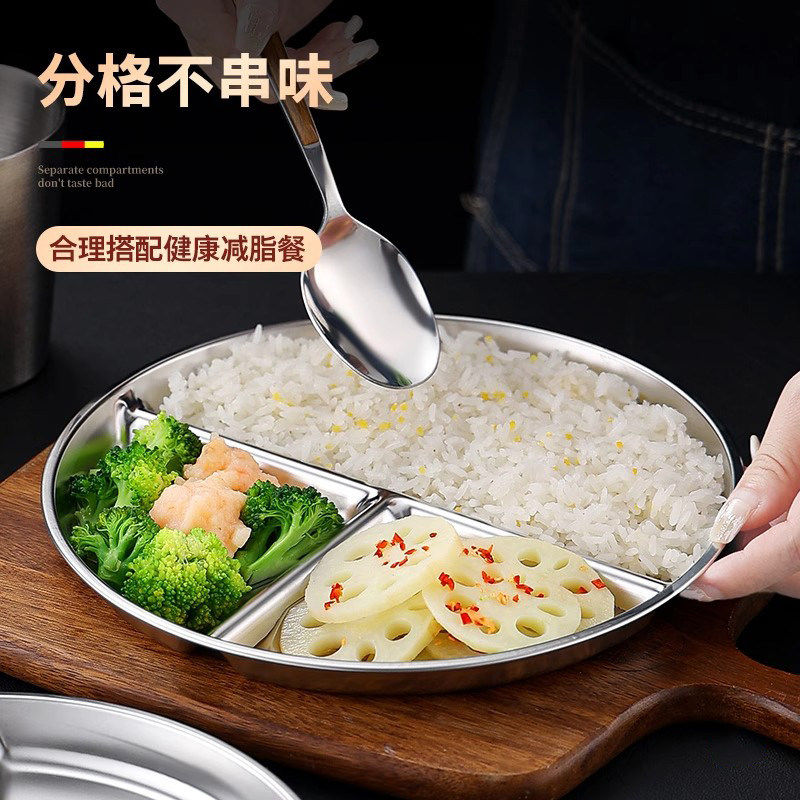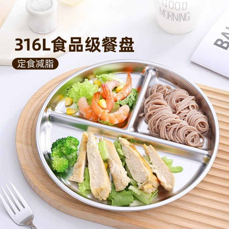 日本进口211减脂餐盘分格减肥专用316不锈钢一人食三格定量分餐盘